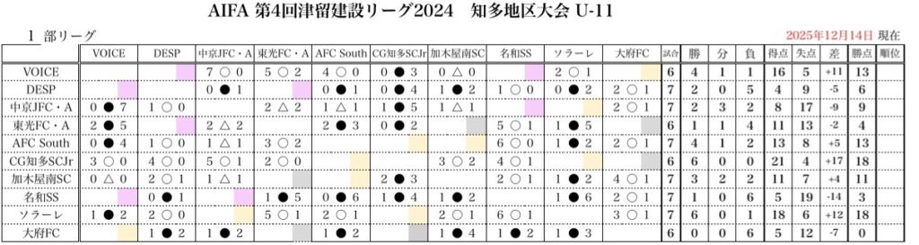 AIFA 第4回 津留建設リーグ2025知多地区大会 U11