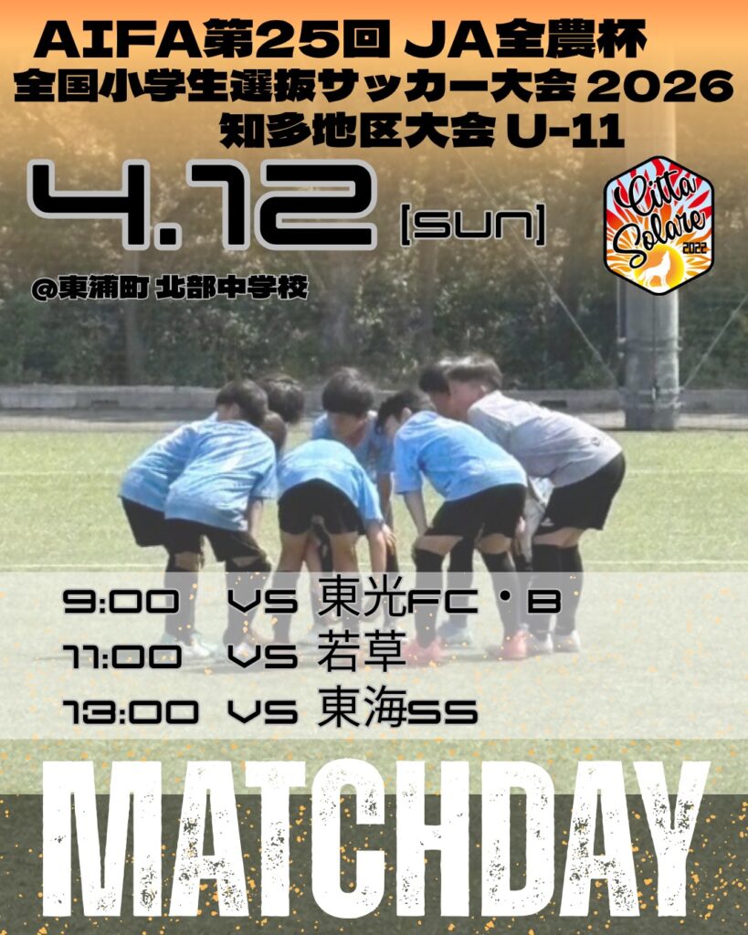 この度、JA全農杯2026 知多地区大会(U-11)が行われ、以下の結果となりました。